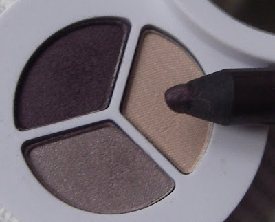 Idag satte jag nyfiket penslarna i nya skuggan från cliniquegåvan, en lila trio vid namn Come Heather. Att måla med skuggan var ett riktigt nöje, färger och textur är toppen. Jag har den ljusare grålila över hela ögonlocket, den champagnefärgade skuggan i inre ögonvrår och den mörklila i yttre vrår och globlinje. En välkomponerad och lättanvänd trio, tycker jag!